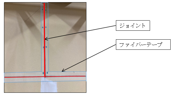 このテープが貼られていないと、ボード継ぎ目の部分から、ひび割れが起きる可能性が高くなります。