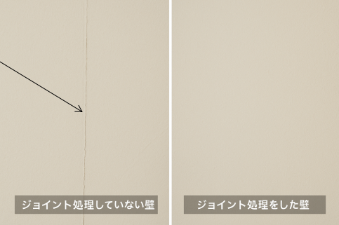 ジョイント処理やビス埋め処理を行うことで、クロスの剝がれや浮きなどを防ぐことができ、長持ちする美しい仕上がりになります。