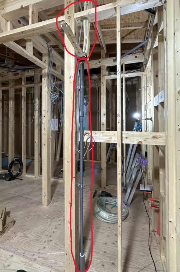 このような電気配線やエアコン、水道の配管は壁の中にあります。