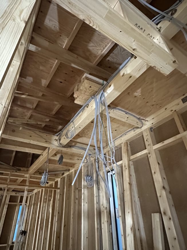 このタイミングでは、大工工事と並行して電気・エアコン・水道など様々な種別の工事が行われます。