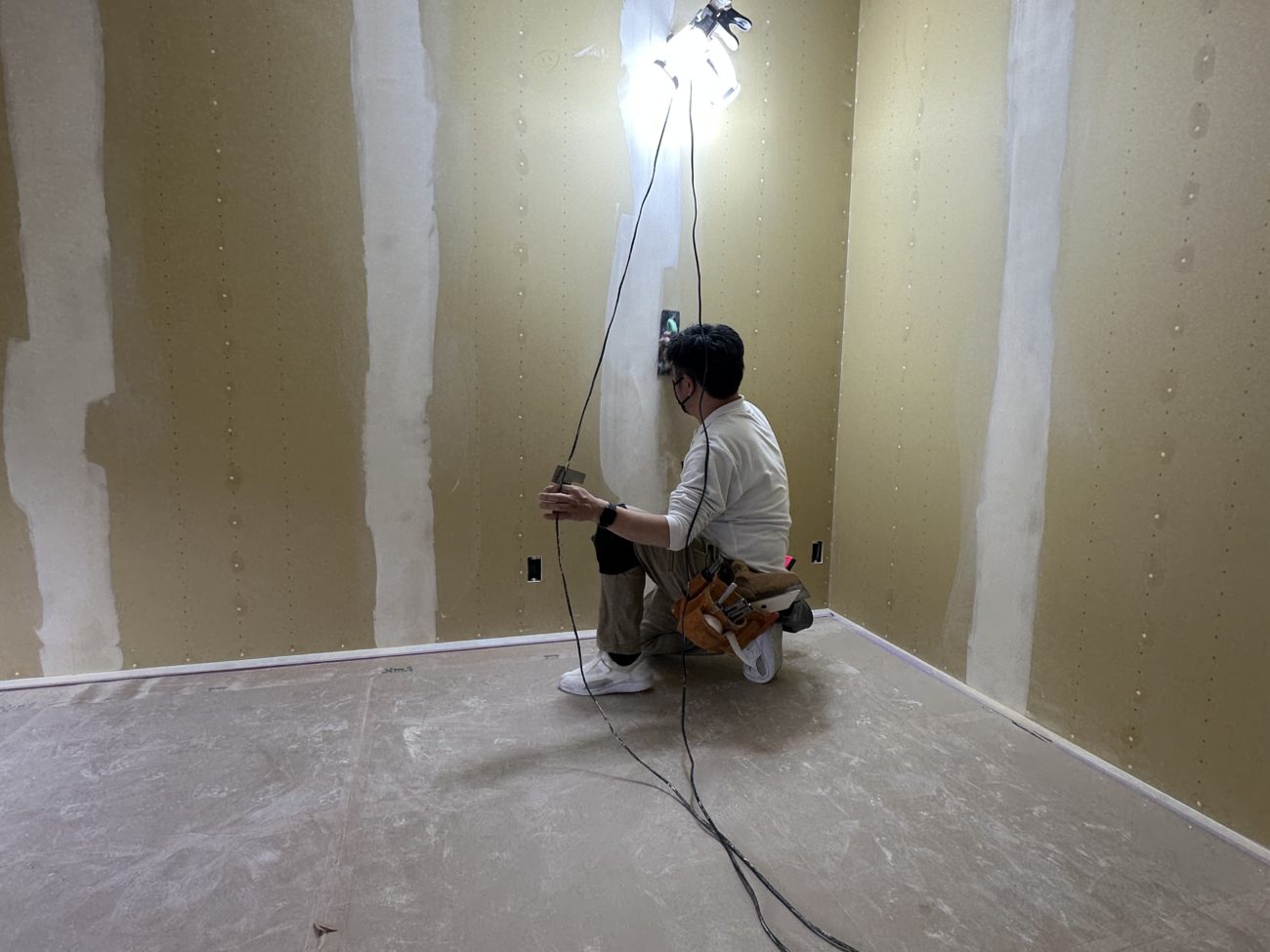 壁→天井の順番で石膏ボードを施工します。