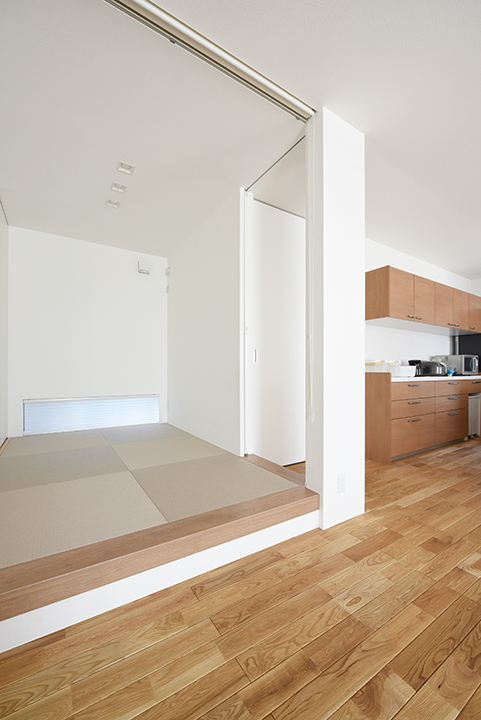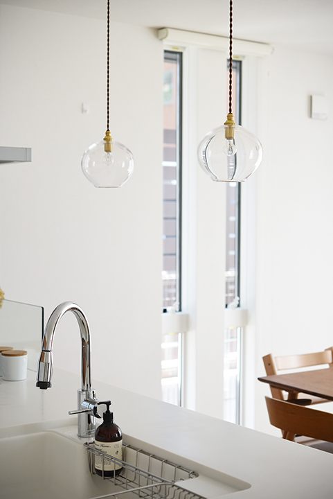 ライトは様々な種類がありますが、LDKなどメインのお部屋には天井に埋め込むタイプのダウンライトにすることで大空間をよりすっきりとみせてくれます。